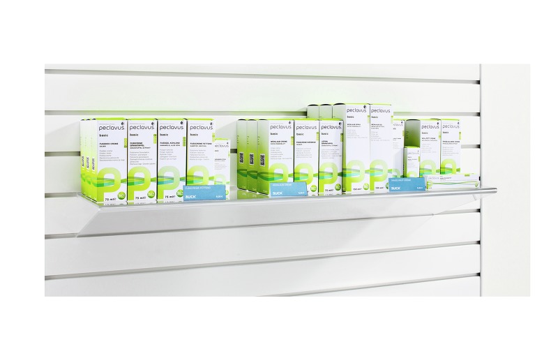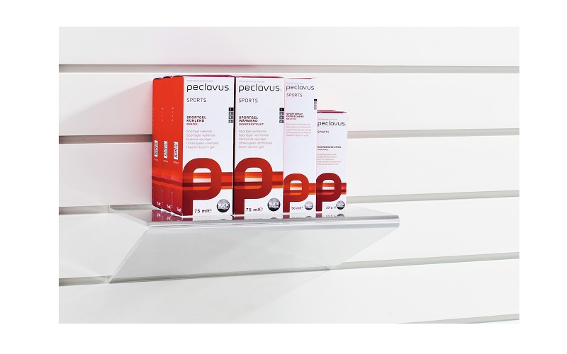 Благодаря своей компактности, изящности и лаконичному дизайну панель-витрина может использоваться даже в небольших кабинетах и прекрасно вписывается в любой интерьер. Это эксклюзивный дизайнерский продукт с гибкими возможностями. Брошюры, косметику, ортопедические изделия, пробники и тестеры — все это теперь вы сможете расположить буквально на уровне глаз клиента. В зависимости от того, какие товары и в каком количестве вы хотите разместить на витрине, вы можете заказать нужное количество полок, держателей, боксов, контейнеров и крючков. Все эти аксессуары изготовлены из высококачественного акрила или металла, лег­ко комбинируются между собой и крепятся к настенной панели бесшовным способом.
