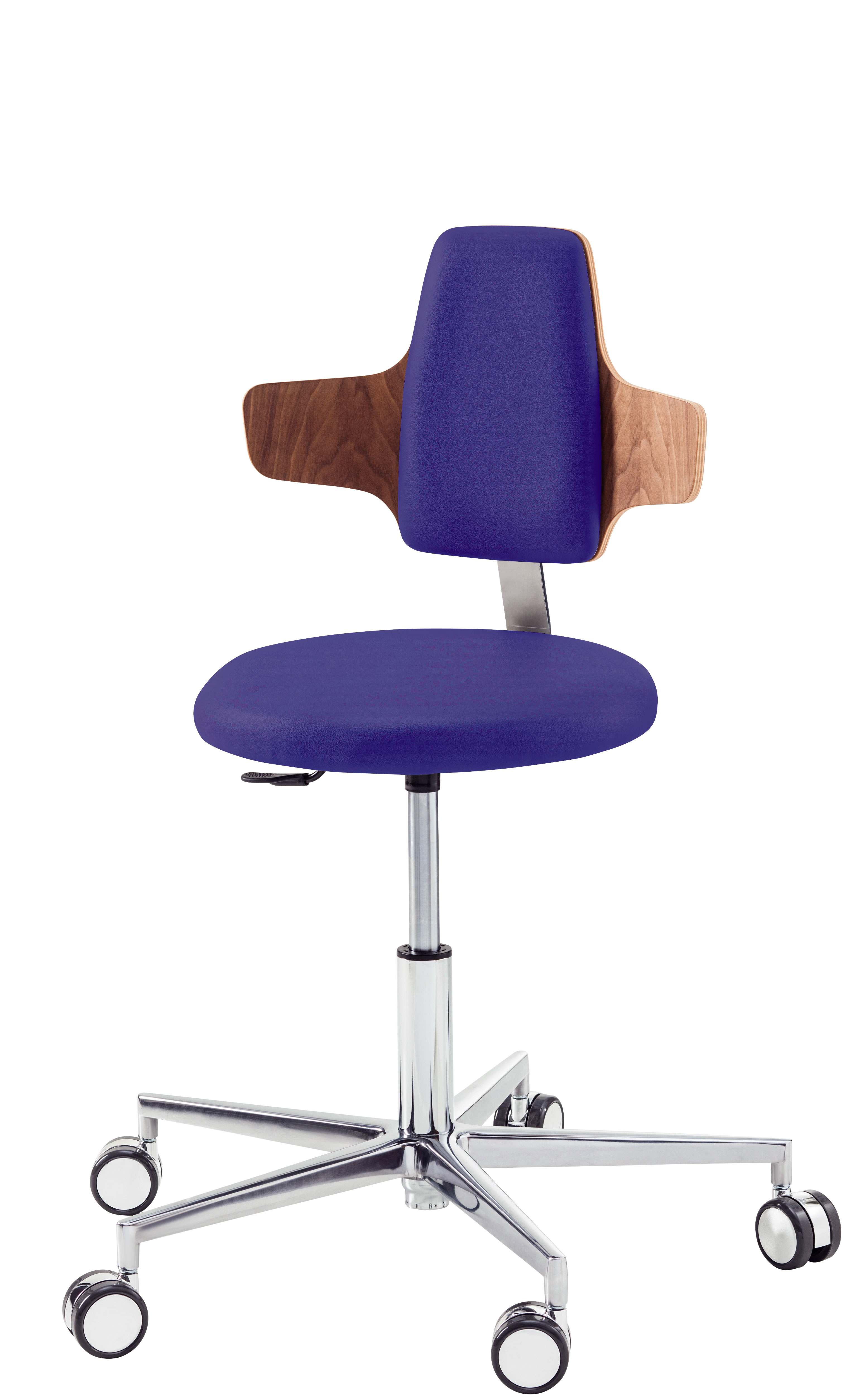 Комфортный мягкий стул с возможностью вращения на 360 градусов. Прочное пятилучевое основание оснащено двойными роликовыми колесами с механизмом блокировки, который реагирует на вес специалиста. Этим обеспечивается хорошая подвижность стула во время работы и его надежная фиксация при отсутствии нагрузки. Изменение высоты – пневматическое, с рычажным механизмом управления.