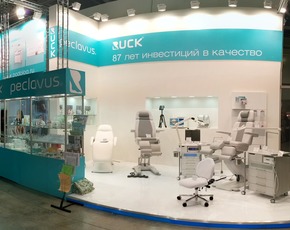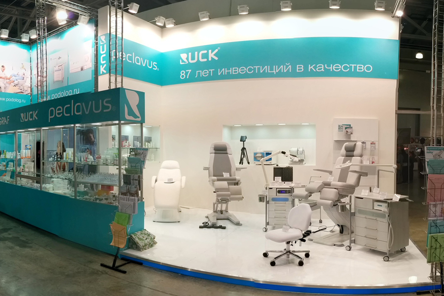 Оборудование для салонов красоты и медицинских центров (слева направо): косметологическое кресло Ballerine 2003, педикюрное кресло Stella, педикюрный шкаф Podolog L-UV с лампой-лупой Circus и аппаратом Podolog Eco, педикюрное кресло Podolog Stella2, педикюрный шкаф Podolog ML-UV с лампой-лупой Circle XL Professional и аппаратом Podolog Nova3.