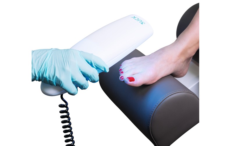 Практичный и удобный аппарат с мобильной ручкой, оснащенной двумя 9-ваттными лампами и таймером на 2 мин.