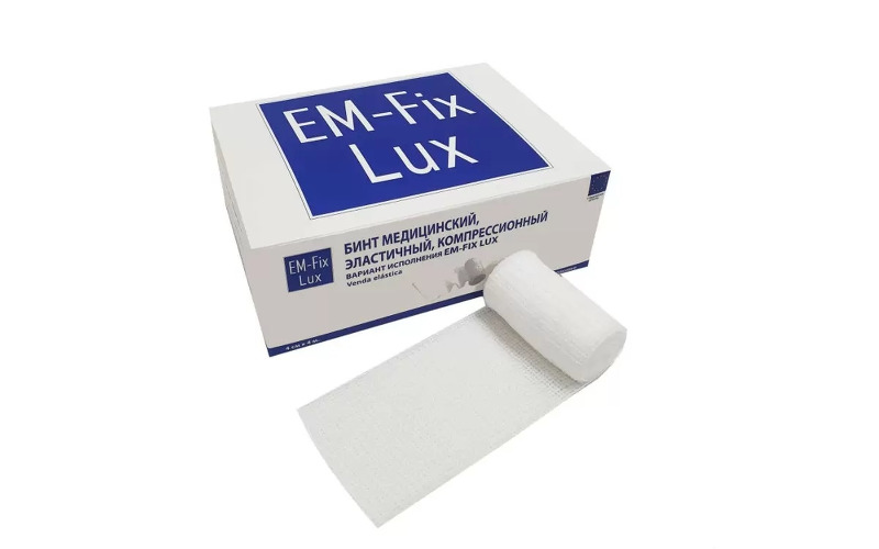 EM-FIX Lux — высокоэластичный фиксирующий бинт с обработанным краем. Изготовлен из гипоаллергенного материала. Может использоваться для фиксации повязок, шин, медицинских устройств, в качестве поддерживающего бинта при мышечной боли, растяжениях, травмах сухожилий и связок, в том числе во время функциональной реабилитации.