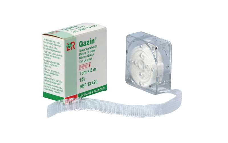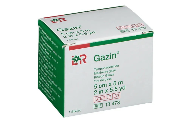 Лента из перевязочной отбеленной марли, для тампонирования полостей и свищевых ходов, однослойная, стерильная. Обладает высокой гигроскопичностью. Состав: 100% хлопок. Упакована в прозрачный пластиковый диспенсер (поликарбонат) со сквозными отверстиями, затем в пакет из целлюлозы, помещенный в картонную коробку. Плотность 20 нит/см2. Стерилизована паром (134°С).