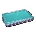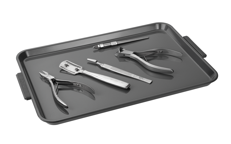Теперь Вы также можете заказать поднос для инструментов в цвете. Красивый внешний вид безусловно важен, но у данного товара есть еще одно бесспорное достоинство: поднос и крышка скрепляются двумя силиконовыми ремешками, что является важным аспектом безопасности при работе с острыми инструментами. Во время процедуры крышку можно разместить под подносом, что позволяет сэкономить место на рабочих поверхностях. Также можно штабелировать несколько подносов. Изделие можно дезинфицировать средствами не содержащими спирт. Поднос доступен для заказа в бирюзовом, антрацитовом, фиолетовом, розовом или белом цветах.