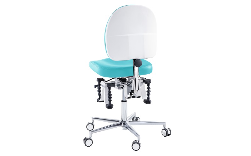 Этот стул был разработан с учетом специфики профессиональной деятельности подологов и мастеров педикюра. Технология «Биосвинг» приспосабливает стул к человеку и существенно снижает нагрузку на позвоночник. Во время работы специалист занимает в основном несколько наиболее частых положений. Повороты, продолжительные наклоны корпуса вперед и в стороны постоянно нагружают позвоночные диски. Последствиями неподвижного продолжительного сидения являются не только усталость и перенапряжение, но и снижение работоспособности. Технология «Биосвинг» позволяет заниматься активной гимнастикой во время работы, не задумываясь об этом. Запатентованные эластичные двигательные элементы под поверхностью сиденья точно и гармонично воздействуют на такие процессы жизнедеятельности как дыхательный и сердечный ритмы. Благодаря этому улучшается самочувствие и снимается усталость. Специальные амортизирующие устройства с механизмом памяти оптимально управляют собственной энергией Вашего тела. Спинка может следовать движениям корпуса или находиться в фиксированной позиции. Вместе с балансировкой нагрузки на таз технология «Биосвинг»  укрепляет и стабилизирует мышцы спины. Динамичная переменная нагрузка улучшает трофику позвоночных дисков и предотвращает их износ.