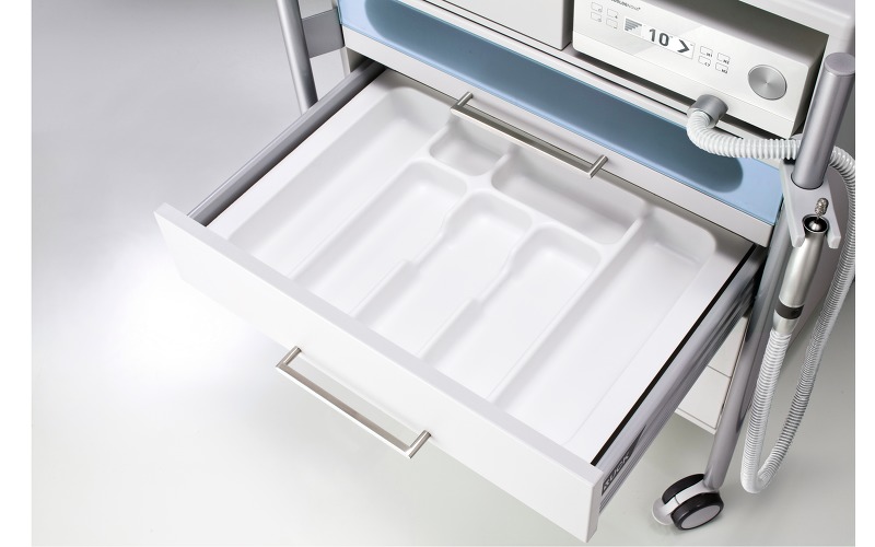 В стандартной комплектации педикюрный шкаф поставляется без органайзера для инструментов и аксессуаров. Органайзер имеет 6 отделений для классифицированного хранения инструментов и других принадлежностей, что в значительной мере облегчает работу и экономит время. При необходимости свободные выдвижные ящики шкафа могут быть укомплектованы аналогичными пластиковыми органайзерами.