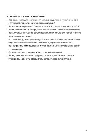 вида (мягкая-мягкая/ жесткая жесткая - - - жесткая/ супермягкая-супермягкая) При неправильном смешивании может изменяться консистенция и и и и и и и и и время отвердевания • Супер-мягкая паста должна храниться в холодильнике • Перед работой с с с с мягкой мягкой и и супермягкой пастой необходимо смазать