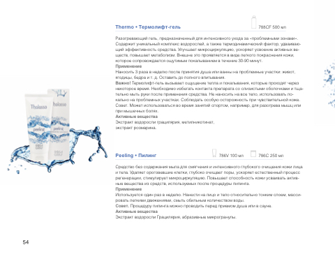 Важно! Термолифт-гель вызывает ощущение тепла и покалывания, которые проходят через некоторое время. Необходимо избегать контакта препарата со слизистыми оболочками и тща- тельно мыть руки после применения средства. Не наносить на все тело, использовать ло- кально на проблемных участках. Соблюдать особую осторожность при чувствительной коже. Совет. Может использоваться во время занятий спортом, например, для разогрева мышц или при мышечных болях.